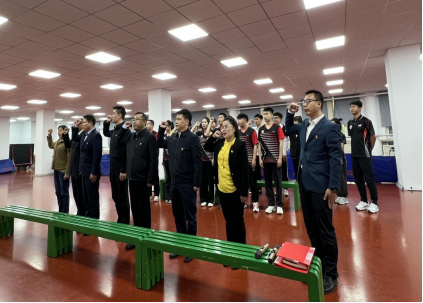 活动过程中,孙长良领誓,全体党员重温入党誓词。铮铮誓言是全体党员对党的承诺,也是全体党员继承和发扬“国乒精神”团结一致,努力拼搏,为国争光的庄严承诺。省乒乓球锦标赛参赛队员,党员代表,学院乒乓球专项党团员一同参加了此次活动。乒乓球队队员、党员吴限在活动结束后和指导组领导进行了比赛交流实践展示。