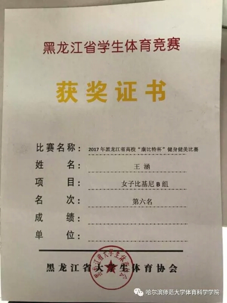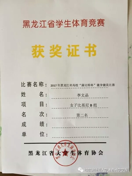 为了进一步推广群众体育运动发展,带动我省全民爱体育热潮,进一步夯实健身健美体育运动特色发展。2017年11月7-8日,由黑龙江省大学生体育协会主办的高校“康比特”杯健美健身比赛隆重举行,本次大赛吸引了我省18所高校近百名健美健爱好者参加,全省共有152人参加比赛。本次大赛参赛单位和规模均达到了历史最高。经过紧张激烈地角逐,在学校的大力支持下,领队王韶峰院长,教练肖宁宁董大伟老师共同努力下,全体参赛运动员不负众望,凭借出色的发挥赛赢得了裁判员的肯定及观众的赞赏。小欧视频