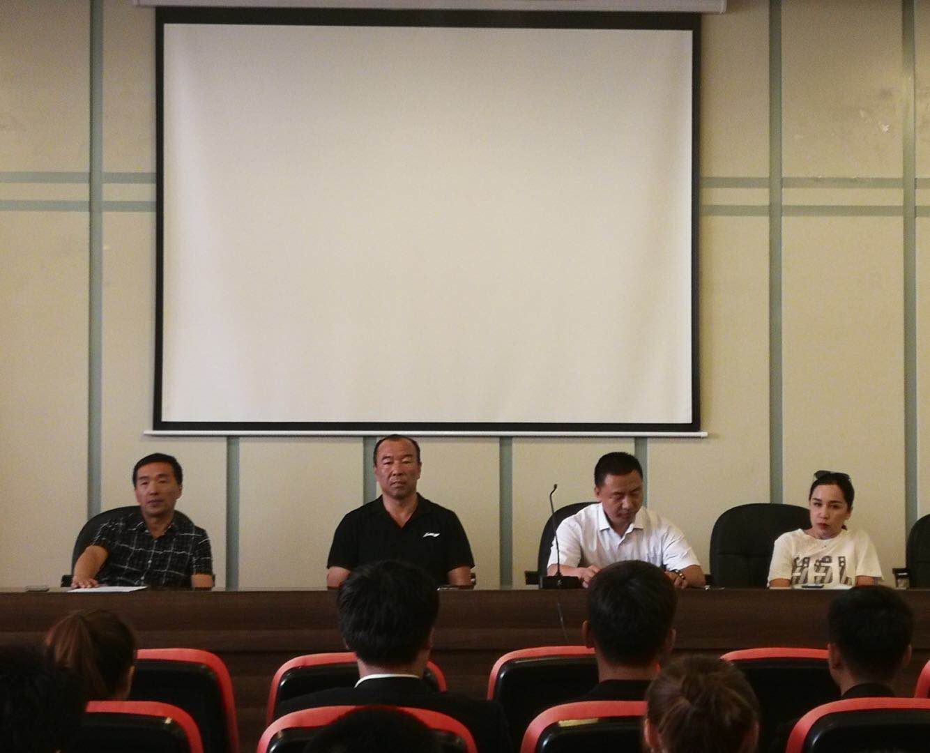 最后学院党委副书记冯铁南对新一届学生主席团表示祝贺并对往届主席团的辛勤工作给予了肯定,希望新一届主席团成员及各部部长不要辜负老师们的期望,要向往届主席团成员学习。处处留心皆学问,用眼睛发现学习,逐渐在工作中学习积累、总结提高。另外要严格要求自己,把自己树立成学生学习的楷模。各部门之间要紧密配合在一起,放下自我融入到大家中来。相信在四位老师和学生干部的领导下,体科院未来一年的工作将会更加辉煌。