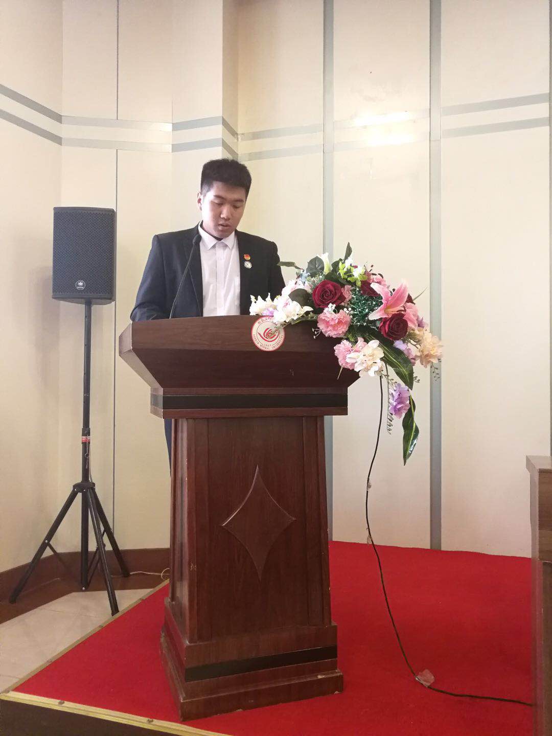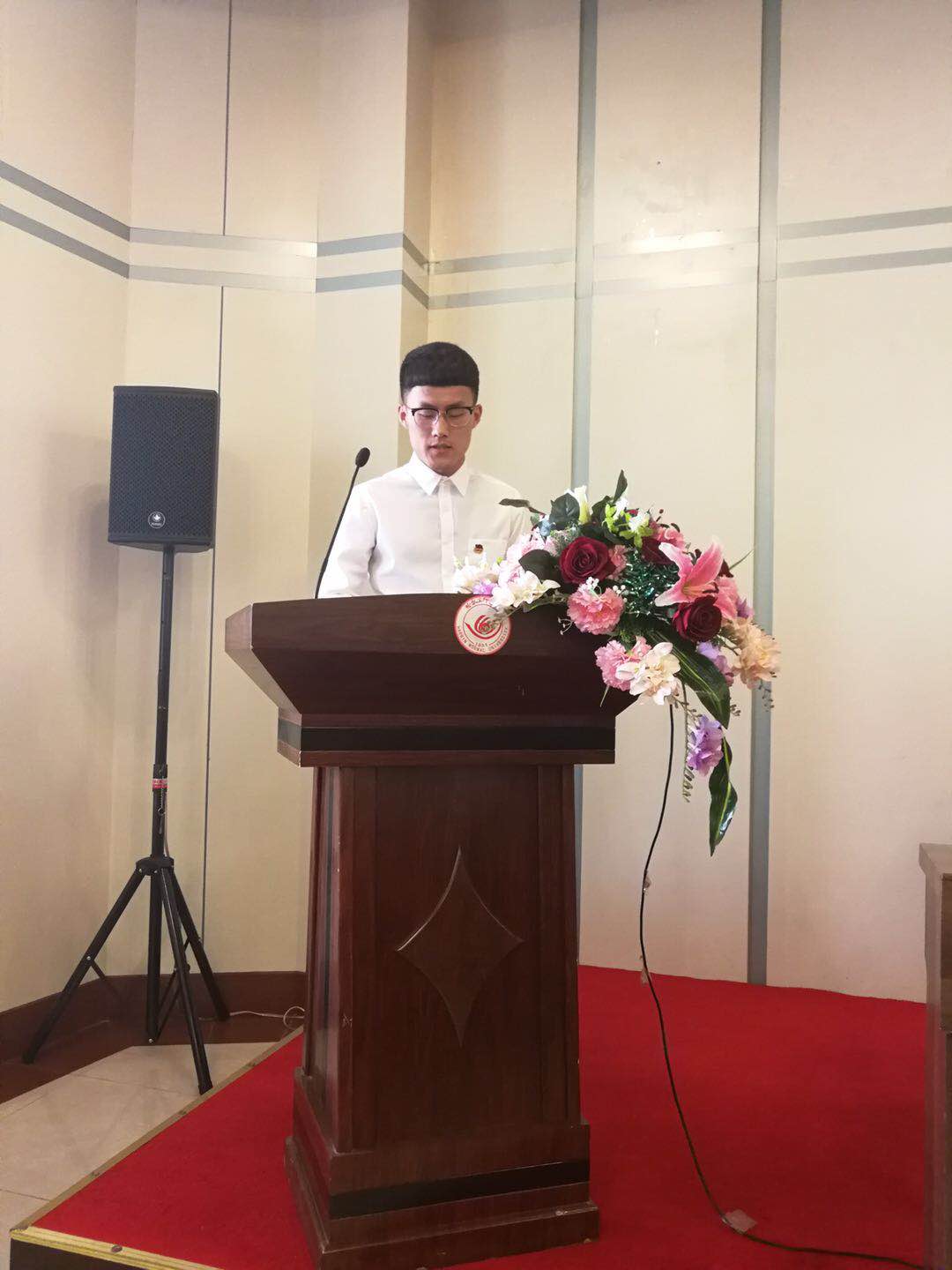 随后由2015级学生组织负责人代表田朕名发言:首先田朕名代表学生会全体成员向关心学生会发展的各位领导和老师表示感谢,感谢各位领导老师,这一年对学生会工作的热情指导,大力支持和帮助,也非常感谢学生会全体成员对学生会工作的紧密配合和大力支持。也感谢你们对学生会做出的努力和贡献,使我们这一届学生会工作得以顺利开展。同时对新上任的学生会干部们表示热烈祝贺。并且和大家分享了这一年的工作经历。