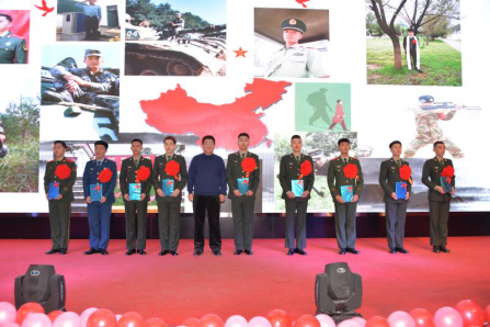 是学院响应国家大学生参军入伍号召最积极,行动最快最好的学院,每年都有十几名各年级学生携笔从戎、参军入伍,并且在部队有突出表现,为学院和学校赢得了荣誉。近几年退伍复员的学生也不断增多,他们带着部队锤炼的优良品质复学返校,也给学院带来了一股新的生机和活力。9名退伍复员学生代表再次披起戎装,由学院党委书记王福泉为退伍复员学生带花颁奖,学生们也一致表示继续发扬军人的优良作风,并把部队优良的风气和学校校风结合,努力为学校学院的发展贡献力量。他们合唱慷慨激昂的小合唱:《强军战歌》,让全院师生再次感受了中国军人的风采。