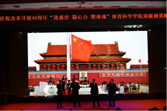 庆祝改革开放40周年“逢盛世 凝心力 塑体魂 ”迎新晚会暨优秀学生颁奖仪式。学院党委书记王福泉,院院长王韶峰,党委副书记冯铁南,副院长韩大伟,副院长关吉臣,副院长孙长良等领导班子全体成员,学院学生办公室(团委),学院办公室,教学科研办公室老师和部分教师和本科各年级学生,研究生共600多人参加了晚会。