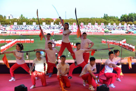 由17级民传、体教、社体、康复专业优秀团体操团队代表进行了刀术表演《男儿当自强》,让全院师生再次感受了60届运动会上200人大型刀术表演的风采。18级体教专业陈福堂、赵博文表演的传统相声用自己特有的方式,说着属于他们的相声,逗的现场观众开怀大笑。