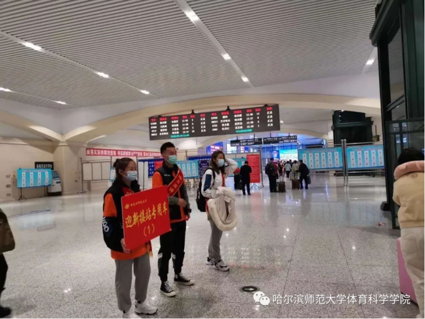 还调出八十名志愿者去哈尔滨火车站迎接全校新生。