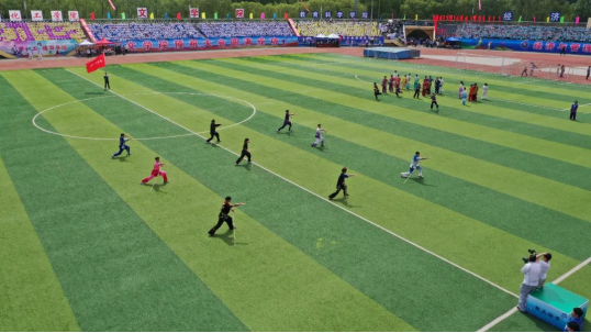 团体操是由团委副书记田野带领民族传统与武术专业和运动训练专业的同学组成的武术展示,他们落步如钢钉,进步快如风,辗转腾挪如虎跃,飘翻起落似龙翔。他们在表演现场不停的变换队形,时而成为方阵列队,接着又变换成为温柔敦厚的太极图,最后小欧视频
