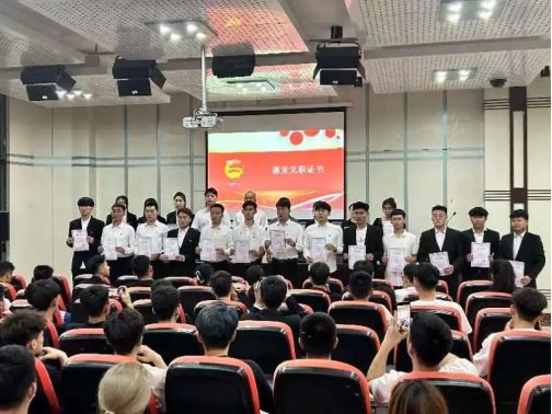 大会第五项,学院领导老师为本届学生组织主席团人员颁发完职证书。