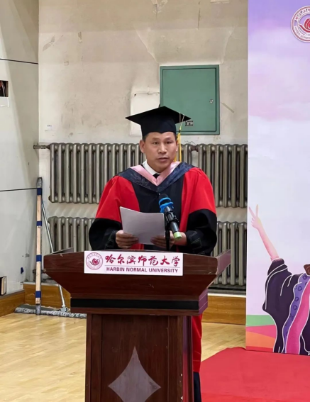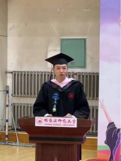 本科毕业生代表王冬发言,他代表2023届全体本科毕业生向母校道别,向导师和同窗表示最衷心的感谢,感谢老师们的悉心教诲和引导,由衷表示将带着在小欧视频