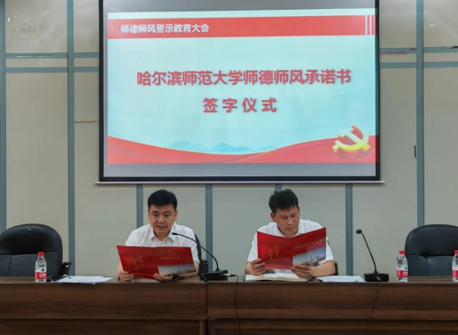 大会上学院领导班子带头,全体参会教师郑重签订了师德师风承诺书。