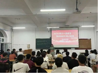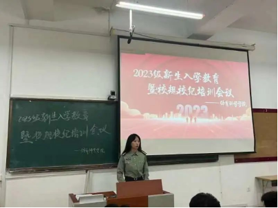 于9月4日在体育楼407、409、507、509教室开展了2023级新生入学教育暨校规校纪培训会议。2023级辅导员黄楚唯老师主持会议,2023级全体新生参会。