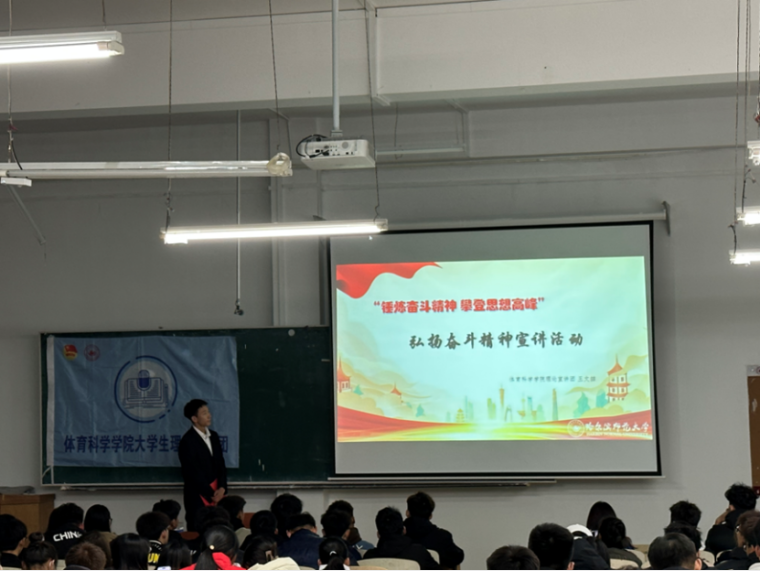 大学生理论宣讲团于2023年10月15日在人文楼127室,开展“锤炼奋斗精神,攀登思想高峰”弘扬奋斗精神主题宣讲活动,本次宣讲主要从“什么是奋斗精神”、“奋斗精神的特征”、“新时代青学习贯彻奋斗精神”三个方面阐释了奋斗精神的基本内容,并确立了本次宣讲的重点。