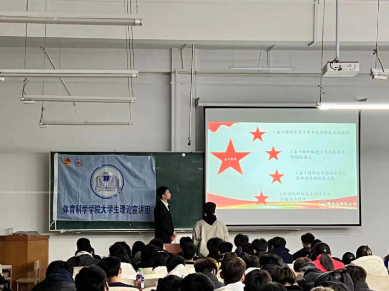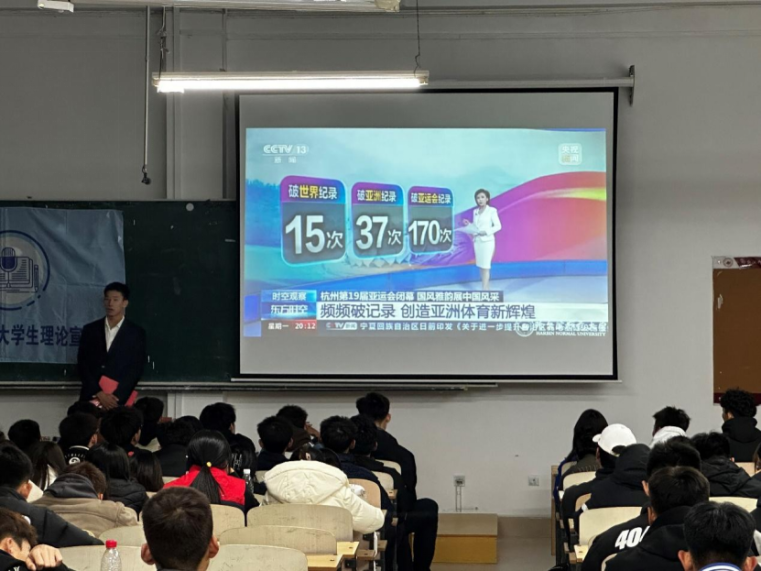 用奋斗追逐梦想,用拼搏书写荣光。在中国共产党的领导下,中国体育事业走过了不平凡的发展历程。伟大事业孕育伟大精神,伟大精神引领伟大事业。宣讲伊始,理论宣讲成员王文喆通过杭州亚运会中国代表队取得的傲人成绩作为切入点,将体育精神与奋斗精神紧密连接,引起在场同学共鸣。