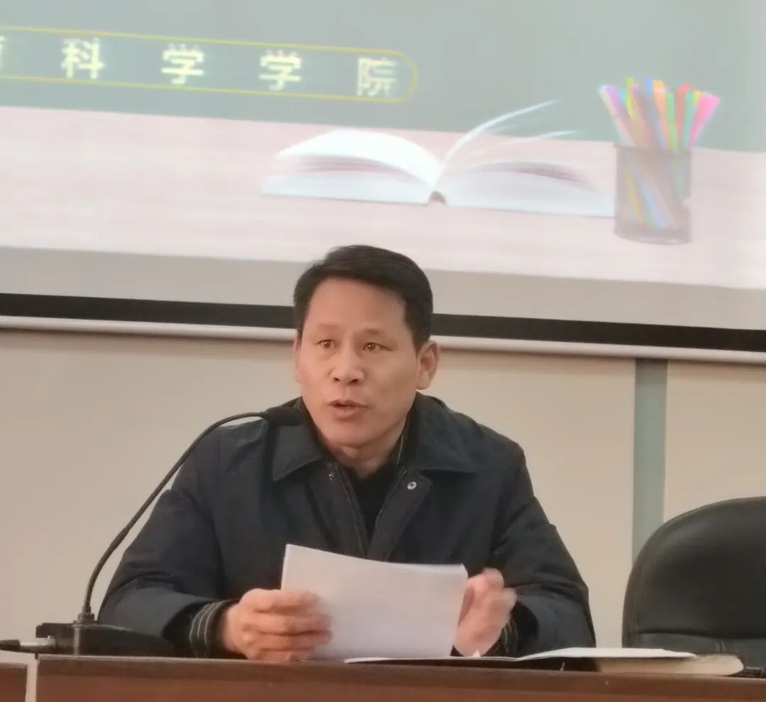 孙长良对本学期以来学院的工作进行了总结,也对全体老师对学院工作的辛勤付出表示感谢。接着就学院的期末考试阶段和寒假假期的各项工作进行了总体部署。说明了本学期的期末考试安排,提出要端正考风,严肃考纪。各监考教师要严格监督考场纪律,各评卷教师要把控评分标准,保证分数评判的公平性。加强学风建设,营造文明、诚信考试的良好氛围。