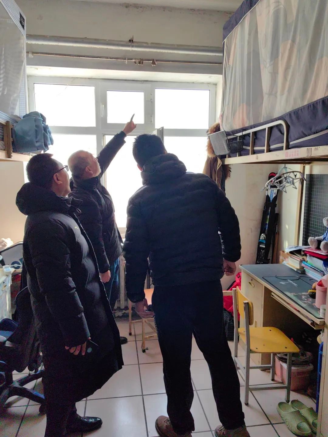 冯书记带领全体辅导员严格按照学校要求对学生宿舍的门窗,冰雪溶冻漏雨等进行了仔细的检查,为新学期开学做好充分的准备工作。同时,也提出了更高的要求,要求所有辅导员本学期要加强学生寝室环境卫生管理,充分认识近期全国各类火灾的教训,严查严管严禁学生使用包括电瓶车电瓶在内的各类违禁电器设备。努力打造一个整洁、文明的学习和生活环境,为培养学生良好的学习和生活习惯奠定了坚实的基础。