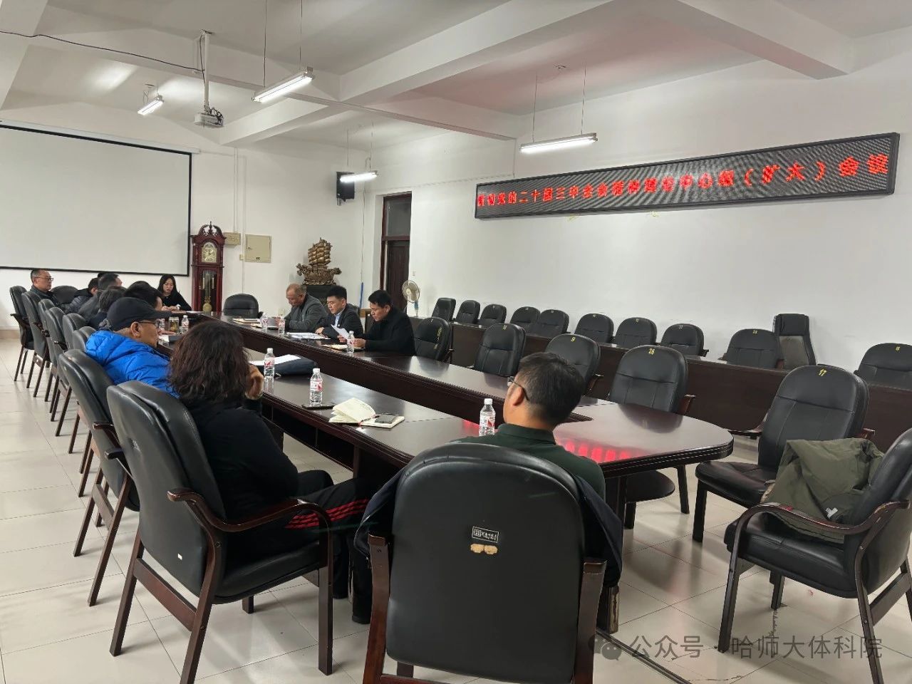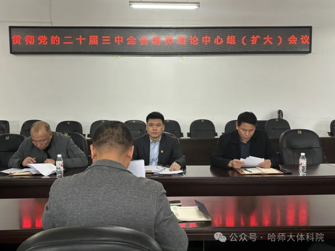 于2024年10月30日召开贯彻全会精神理论学习中心组(扩大)会议,学院党政领导班子成员和各党支部书记参加会议,党委书记韩大伟主持会议。
