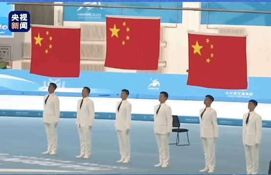 2月8日,黑龙江省冰上训练基地速滑馆举办速度滑冰女子1500米颁奖仪式,我国选手包揽金银铜牌,三面五星红旗同时升起,6名升旗手全部来自哈师大。