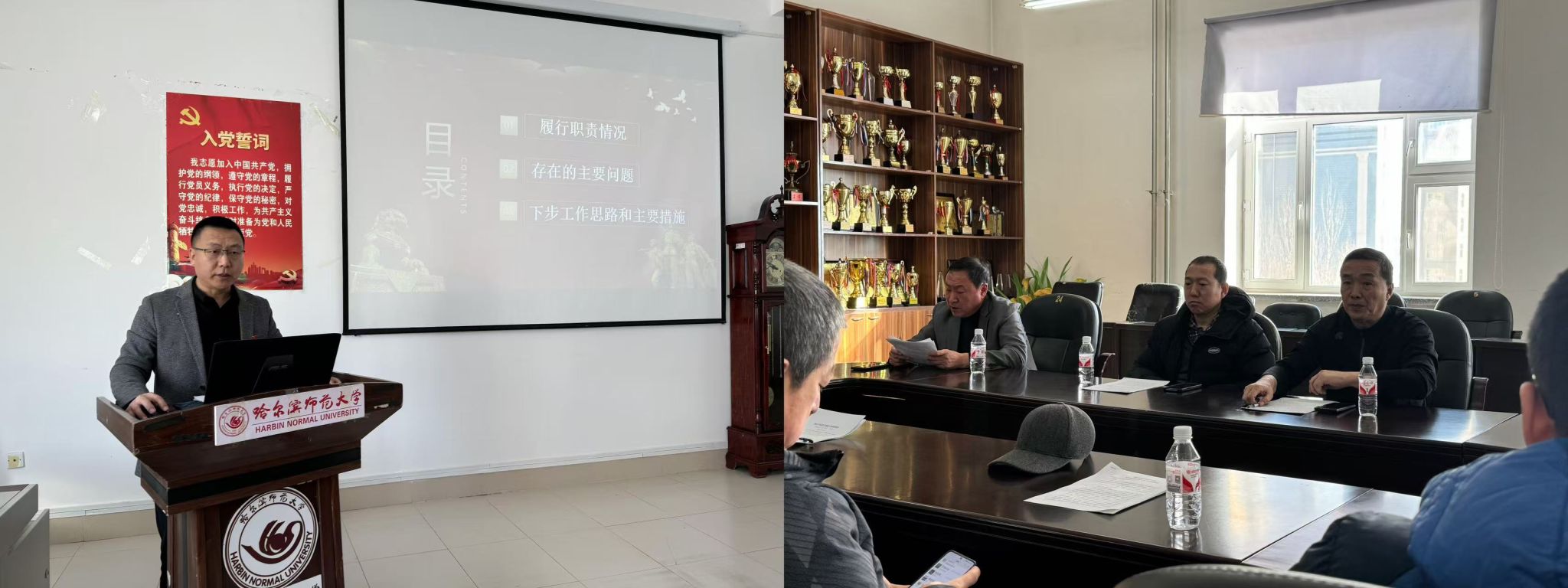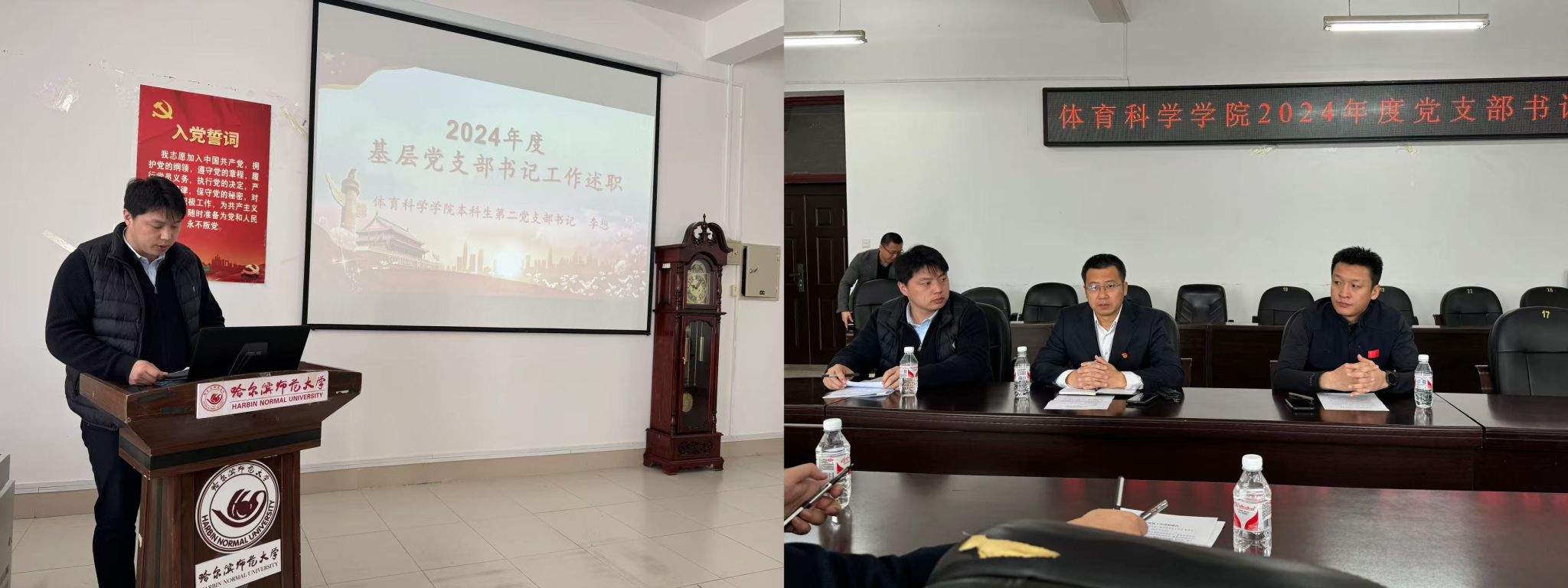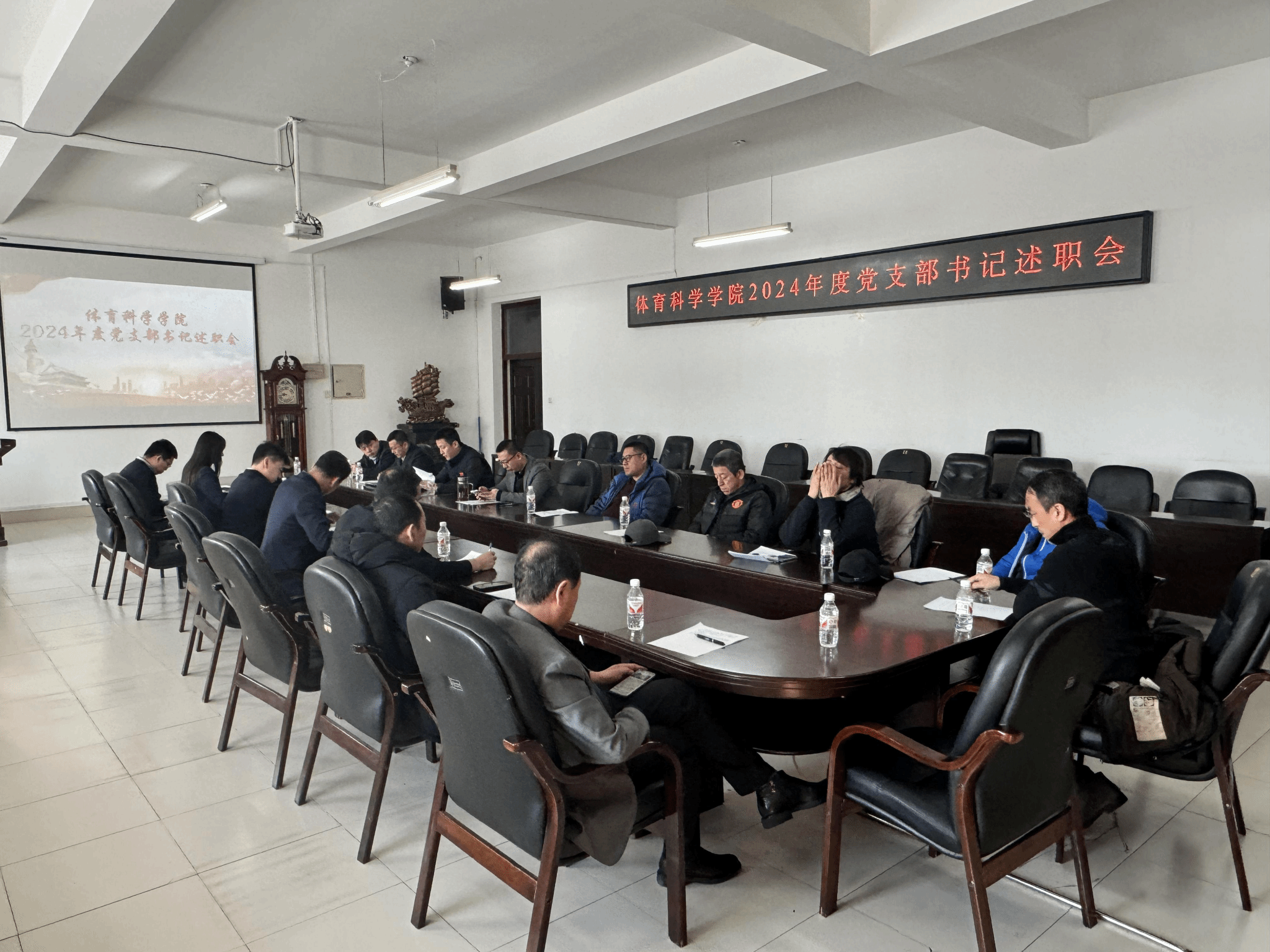 于体育楼401召开2024年度党支部书记抓党建述职报告会。学院党委书记韩大伟、党委副书记院长孙长良、各党支部书记参加会议。会议由学院党委书记韩大伟主持。