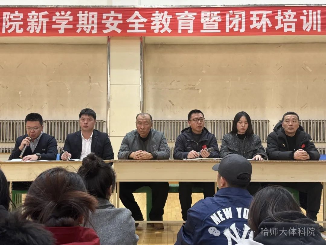 于2025年3月11日在训练馆召开了新学期安全教育暨闭环培训大会。学院党委副书记冯铁南、副处级辅导员刘万鹏、 研究生辅导员任彦波、21级辅导员李朝旭、22级辅导员李想、23级辅导员黄楚唯以及小欧视频
