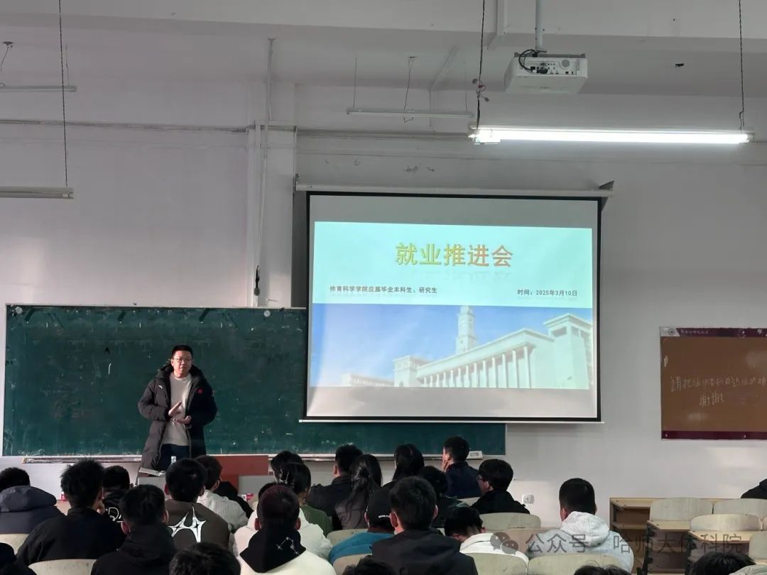 会上,冯书记结合学院专业特色,深度解析就业市场新动向。他指出,数字化转型浪潮正重塑各行业生态,体育产业与人工智能、大数据等技术深度融合,衍生出众多新兴岗位,为毕业生开辟多元化发展赛道,为毕业生提供了广阔的发展空间。在针对就业心态调整,他提出"理性定位、主动出击"的双轨策略,建议毕业生既要把握"体育+"复合型岗位机遇,也要注重基层岗位的实践积累,在职业规划中实现个人价值与社会需求的有效衔接。随后,任老师则针对省平台和国平台的操作进行了具体指导。他详细介绍了两个平台的功能与使用方法,包括如何完善个人简历、搜索合适岗位、投递简历以及跟踪求职进度等关键环节。任老师现场演示了操作流程,并结合实际案例,对同学们在使用平台过程中可能遇到的问题进行了详细解答。他强调,熟练掌握这些平台的使用技巧,将有助于毕业生拓宽就业渠道,提高求职效率。