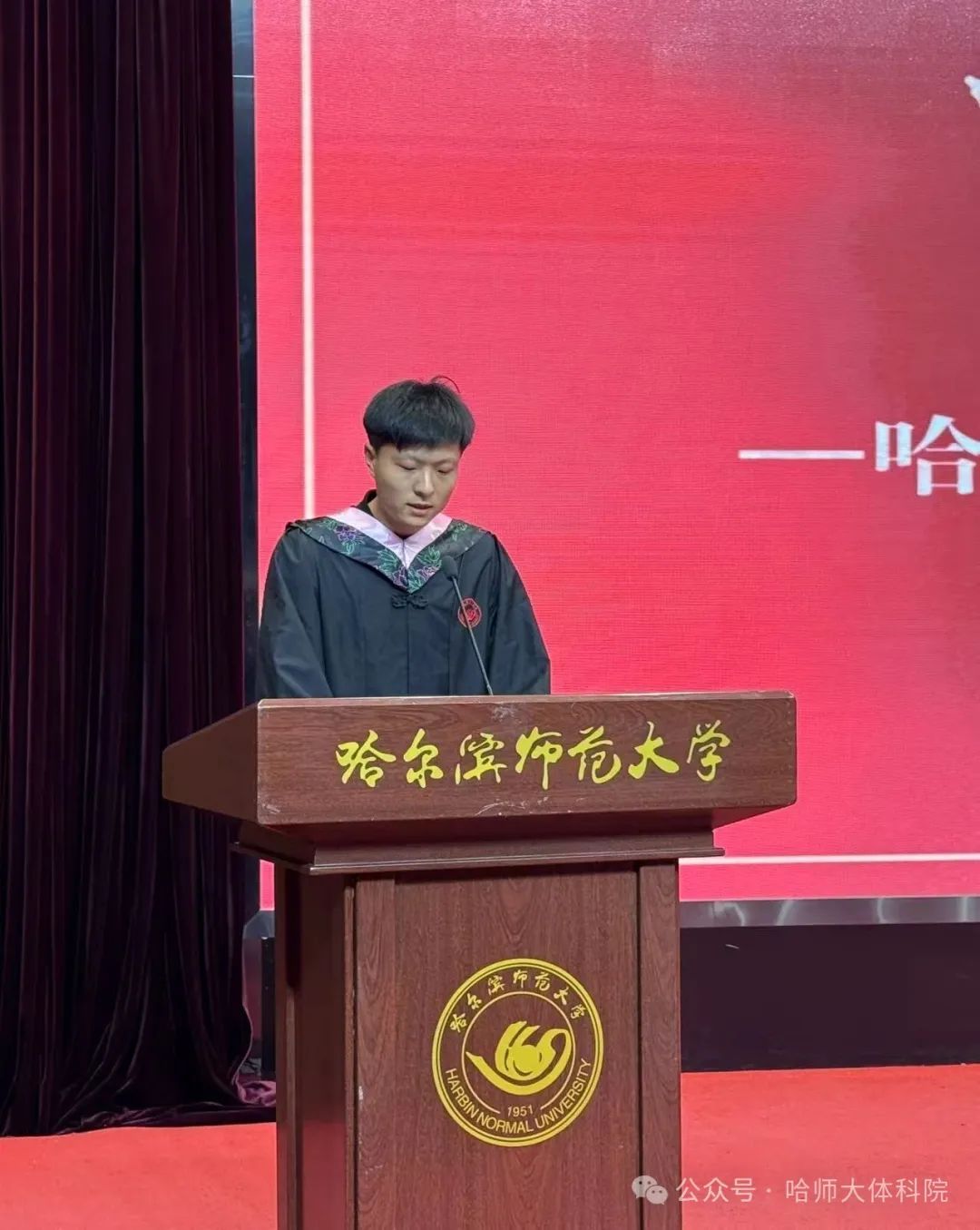 韩大伟书记在讲话中对所有毕业生提出了殷切期望,无论未来走向赛场、讲台还是科研岗位,都要以“胸怀国之大者”的格局,让青春在奋斗中绽放光彩。
