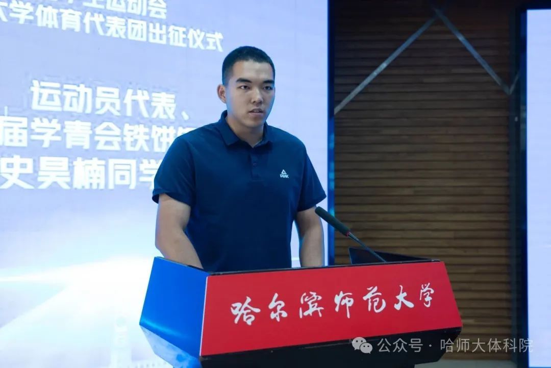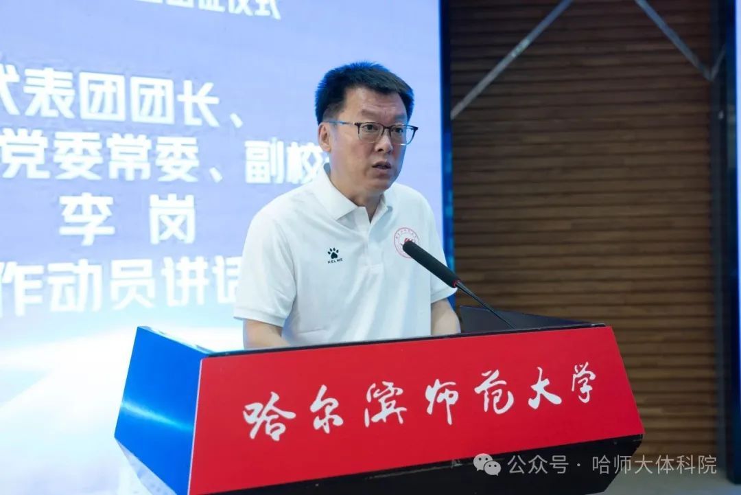 代表团团长、哈师大党委常委、副校长李岗作动员讲话。李校长激励全体运动员发扬拼搏精神,在赛场上展现哈师大学子的卓越风采;鼓励教练员在训练和参赛中要科学指导,发挥专业优势;也强调各保障团队要全力配合,为运动员创造良好条件。相信在全体代表团成员的共同努力下,本次比赛小欧视频