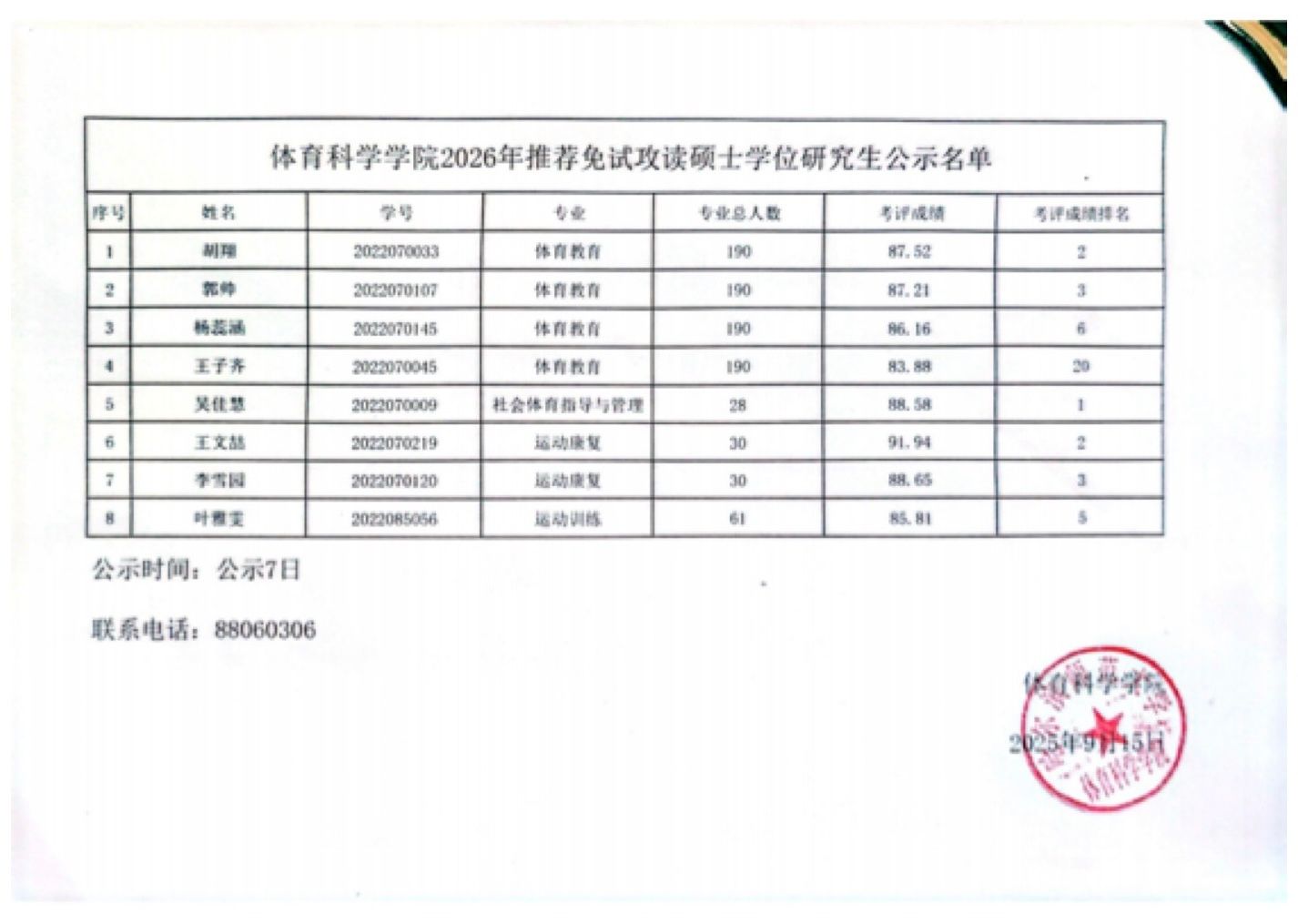 小欧视频 2026年推荐免试攻读硕士学位研究生公示
