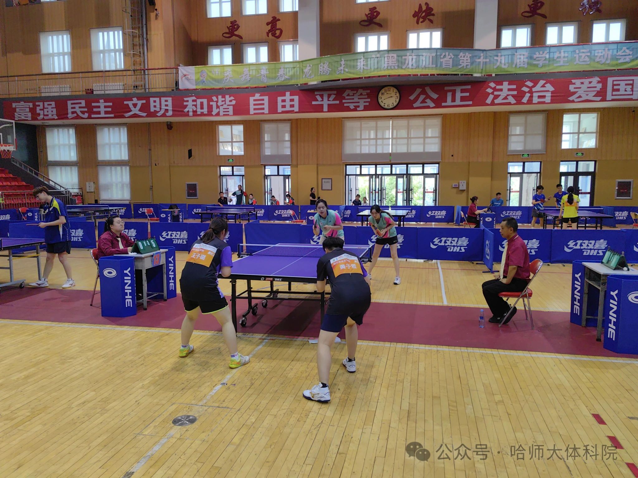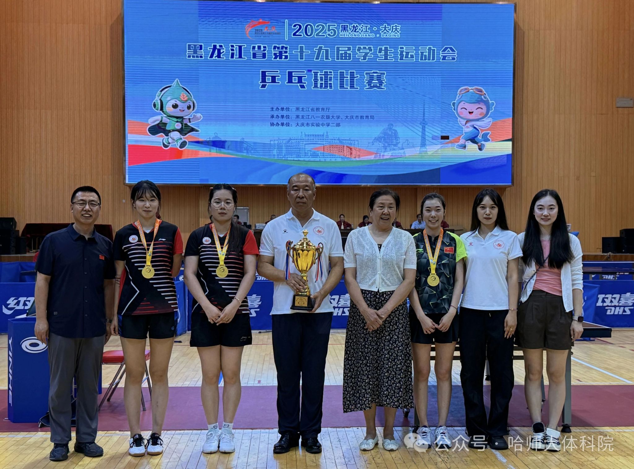 乒乓球队由冯铁南担任领队,张宇华、李嘉睿担任教练,男女共4名队员组成。队员们带着团结拼搏的信念投入比赛,在赛场上展现了精湛的球技与顽强的斗志。经过多轮激烈角逐,乒乓球队最终取得包括女子团体、单打、双打共3枚金牌的优异成绩。具体成绩如下:女子团体金牌:王天芯、吴限、曹冰蕾;女子单打金牌:王天芯;女子单打亚军:吴限;女子单打第四名:曹冰蕾;乒乓球女双冠军:王天芯、吴限;混合双打第四名:韩墨、曹冰蕾。