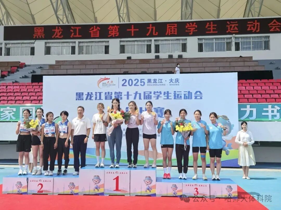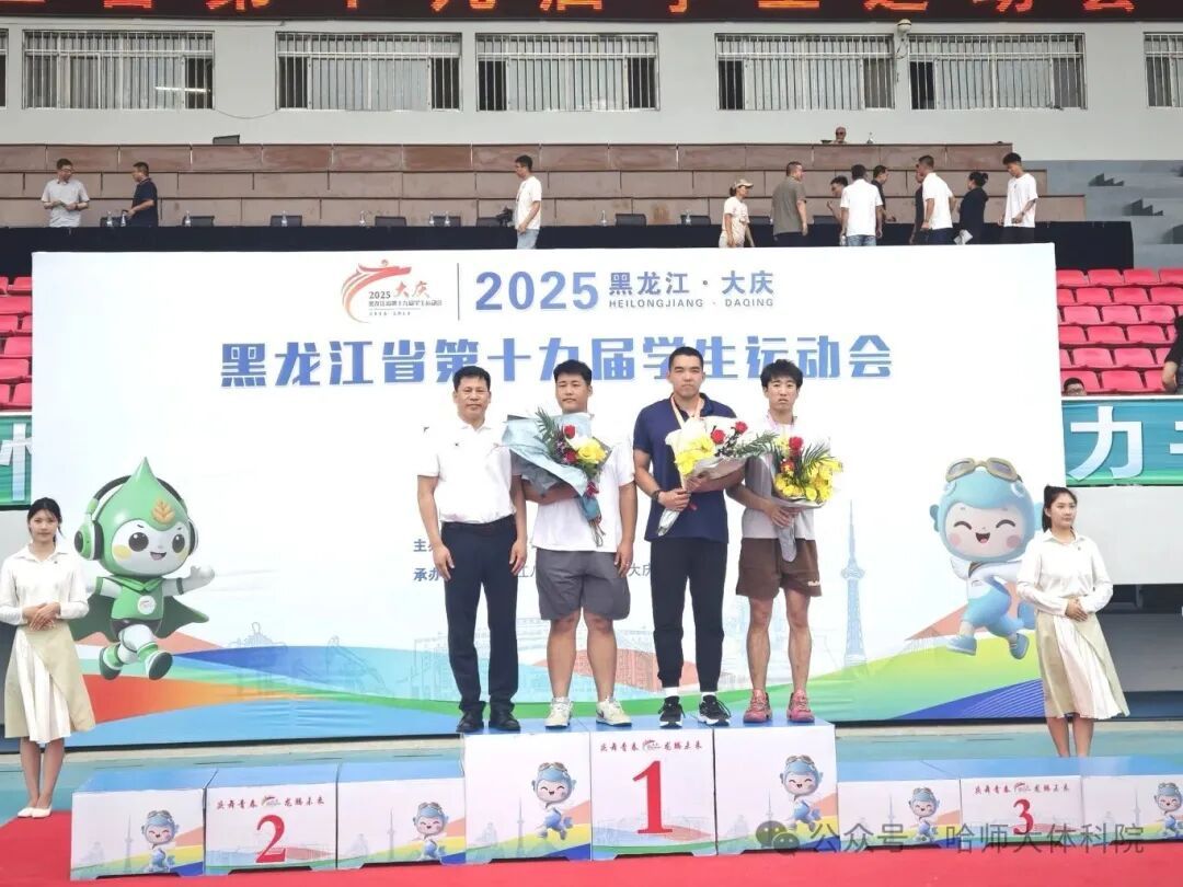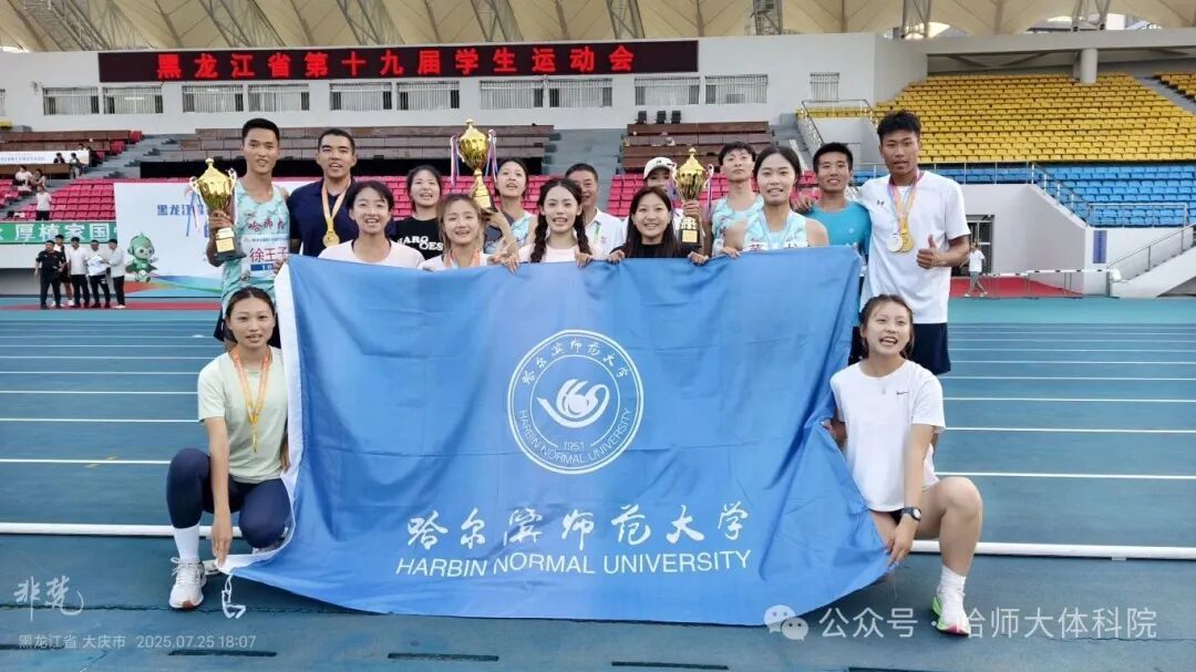 田径队在领队孙长良及教练员朱立新、张元峰、王健的带领下,斩获女子乙组团体总分蝉联冠军、男子乙组团体总分亚军、男女乙组团体总分亚军的优异成绩。其中,史昊楠同学更是打破了尘封21年的黑龙江省大学生铁饼最高纪录。