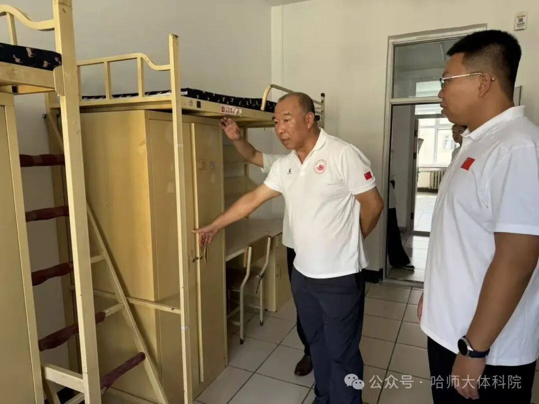 检查中,冯书记逐间进入待入住寝室,聚焦新生居住的核心需求开展检查。一方面全面核查床铺稳固度、门窗密封性、水电线路完整性,对发现的地砖破损、房间漏雨等问题当场登记,叮嘱辅导员第一时间对接主管部门整改;另一方面细致查看寝室环境卫生及周围环境的安全性,对新生辅导员针对检查的细节问题现场指导,确保新生入学时“入住即可安心”。冯书记强调要以“新生未到、安全先行”为原则,同时与宿舍管理员深入沟通,提前打通安全保障和管理服务的“绿色通道”。