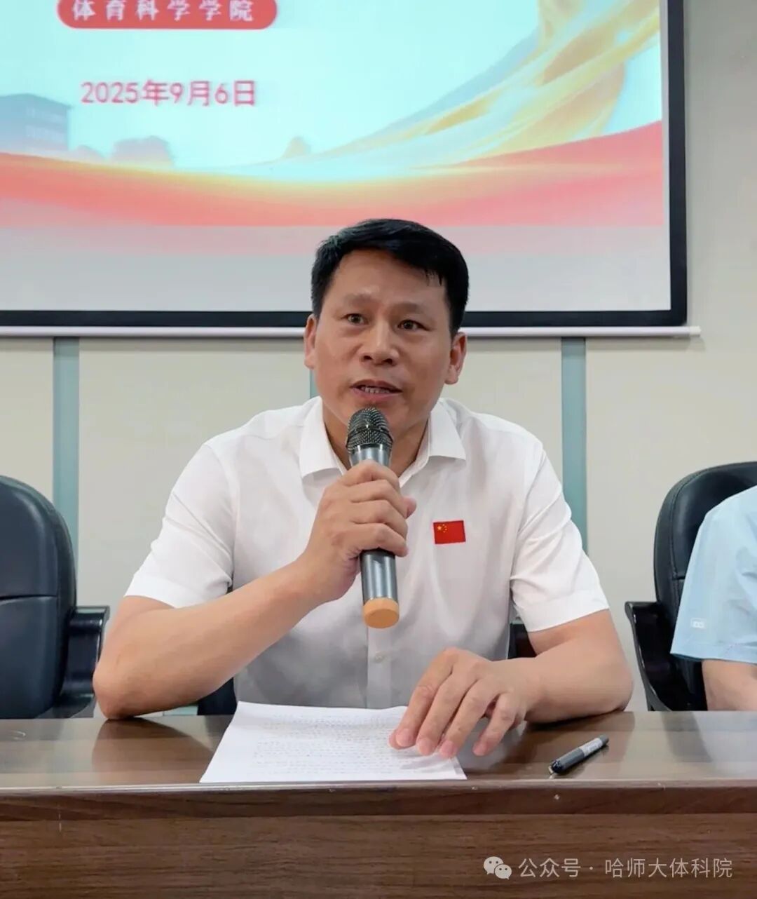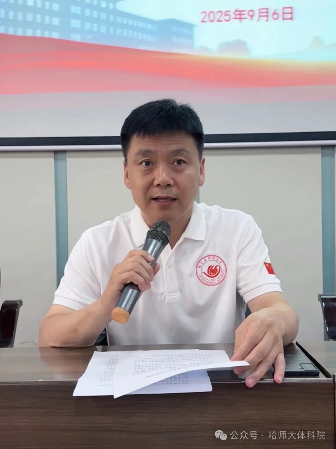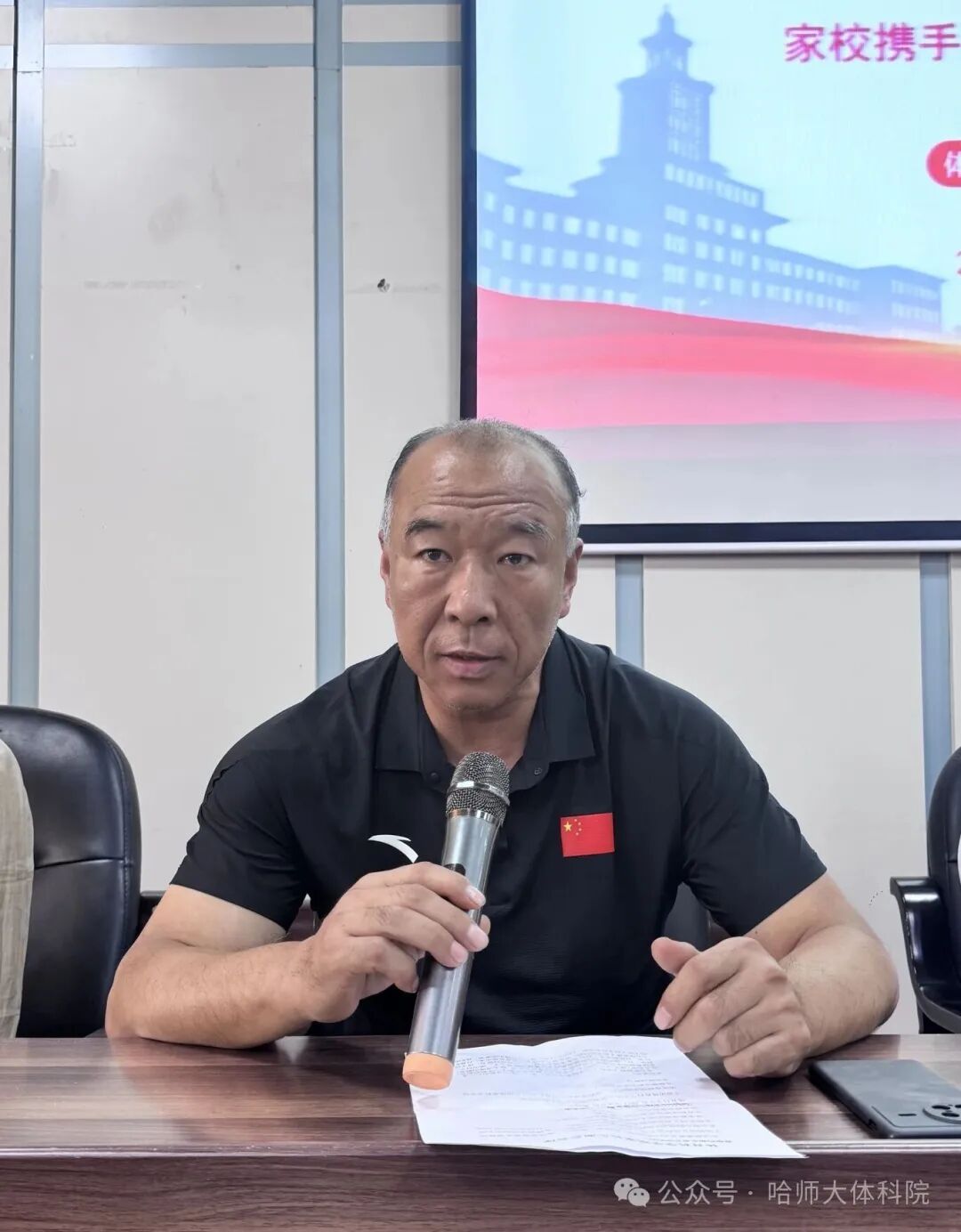见面会上,书记韩大伟首先发言,他详细地为家长们讲述了学院的发展历史,从学院的创立背景,到在不同发展阶段取得的成就,每一个关键节点都生动地展现了学院深厚的文化底蕴和坚韧的发展历程,让家长对学院历史沿革有了一个清晰的初步认识。随后,院长孙长良围绕学院教育课程体系展开讲解。他从专业基础课程与特色选修课程切入,清晰阐述学院通过科学课程设置,培养学生扎实专业素养的具体路径与理念。同时,孙院长还介绍了学院先进的场馆设施,如现代化的体育馆、标准的田径场、配备齐全的训练室等,这些设施为学生提供了优质的学习和训练条件,助力学生在体育领域不断探索和成长。最后,党委副书记冯铁南进行总结发言,他围绕学生管理、心理健康、校园活动等方面,分享了学院为学生提供的全方位支持和保障,让家长们对孩子未来的校园生活更加放心。