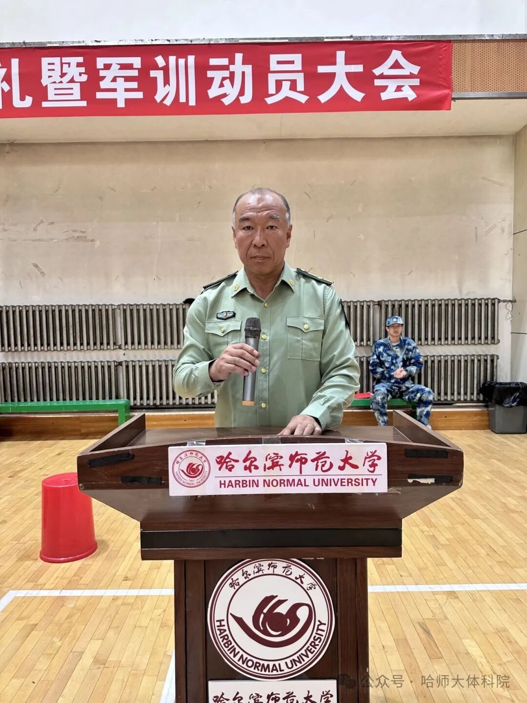第四项,冯铁南做军训动员报告。指出大学生军训不仅是开启大学旅程的“第一课”,更是落实国防教育要求、响应国家人才培养号召的重要实践环节。在军训过程中,新生们将通过队列训练、军事知识学习等内容,掌握基础军事技能,更能在集体生活中学会团结协作,在艰苦训练中磨砺坚韧品格。他希望新生们能以积极的心态迎接挑战,把军人的严谨作风、拼搏精神融入日常,既要认真完成训练任务,也要主动思考军训的意义,将这段经历转化为成长的动力,为成为有理想、有本领、有担当的新时代青年打下坚实基础。军训作为国防教育的重要载体,是培养“四有”人才的关键环节,对提升学生的国防意识、组织纪律性具有不可替代的作用。通过严格的军事训练,新生们将进一步增强爱国情怀,养成吃苦耐劳的品质,学会在集体中奉献、在挑战中成长,这些品质将成为他们未来学习生活的宝贵财富。