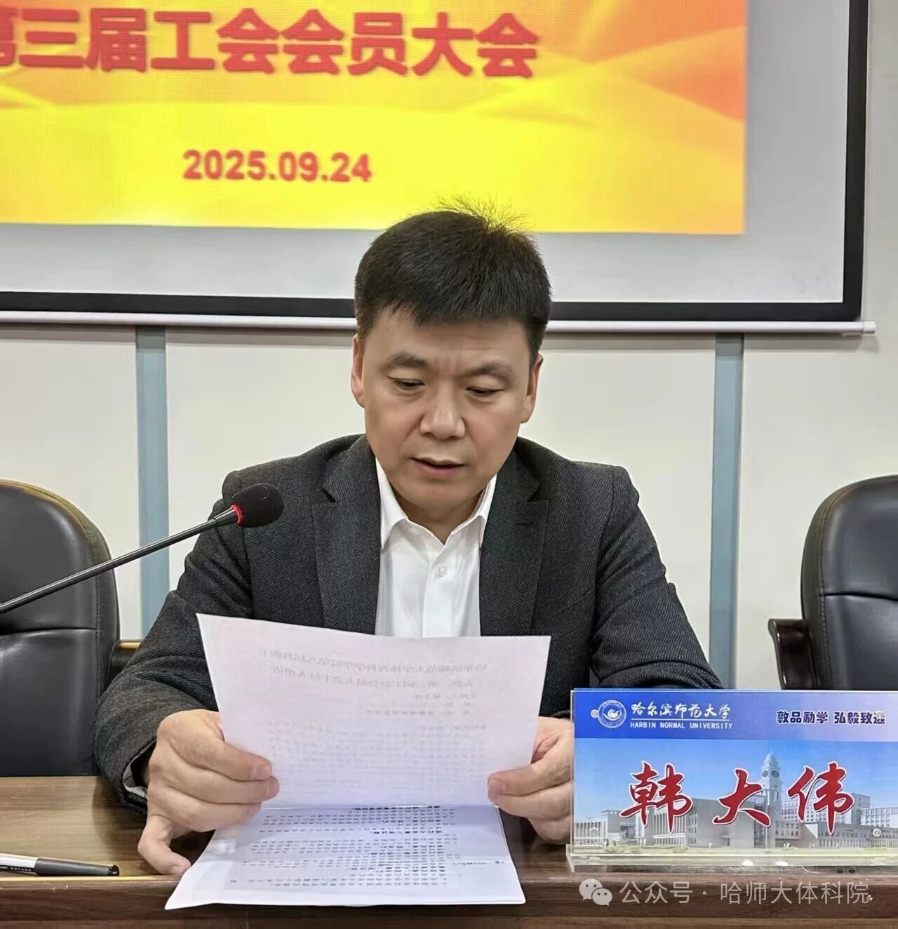 第八届教职工大会、第三届工会会员大会在竞赛馆新闻发布厅召开。学校工会常务副主席杨世君,学院党委成员和全体教职工出席会议,大会由党委书记韩大伟主持。