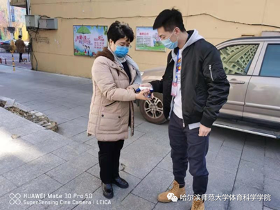 心语:“疫情就是命令,防控就是责任。20201月初,一场没有硝烟的战争打响了,对于奋战在疫情前线工作人员注定是不一样的新年。通过现在的新媒体等多种渠道可以了解疫情防控形势的严峻。作为当代大学生,我希望通过志愿服务为疫情防控贡献自己的一份微薄力,用自己的实际行动去践行时代的责任与担当。20202月初至6月末,我主动申请参与疫情防控志愿服务行动中。主要负责小区实行封闭管理出入戴口罩、扫龙江健康码、测体温及对隔离人员家庭进行入户清理垃圾、购买生活物资等内容。202011月末,我刚结束本学期的课程返回家中,第二天便爆发了疫情,对于已经有过疫情防控工作经验的我来说,更应该投入到这场疫情防控阻击战中。如果说年初疫情不在我们身边的话,那这一次的疫情对我们来说是极为严峻的。穿上防护服,戴上一次性手套,带上护目镜。偶尔会听到社区邻居的一句,辛苦你们志愿者了!更是一股暖流涌上心头。作为即将离开校园步入工作岗位的一名人民教师,我时刻提醒自己要以身作则,作为体育人,不是只有在比赛时冲击第一,还要在危难之际冲在最前。”