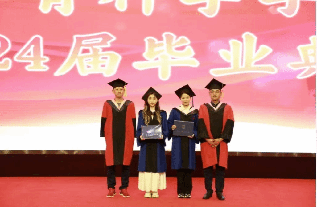研究生导师们为研究生毕业生颁发毕业证、学位证并拨穗,祝愿他们在未来的学术道路上能够走的更远。