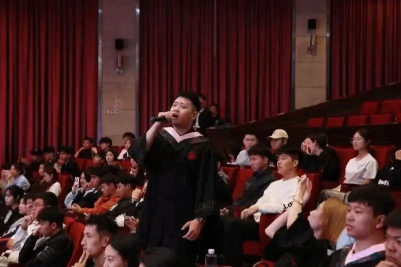 毕业典礼在充满回忆的2020级在校视频播放中拉开帷幕,屏幕上播放着2020级学生们的点滴回忆,毕业生鲁畅、张家宁、陈梓斌和郑婕的歌曲串烧伴着那些欢声笑语,拼搏瞬间共同编织成了他们独有的青春篇章。