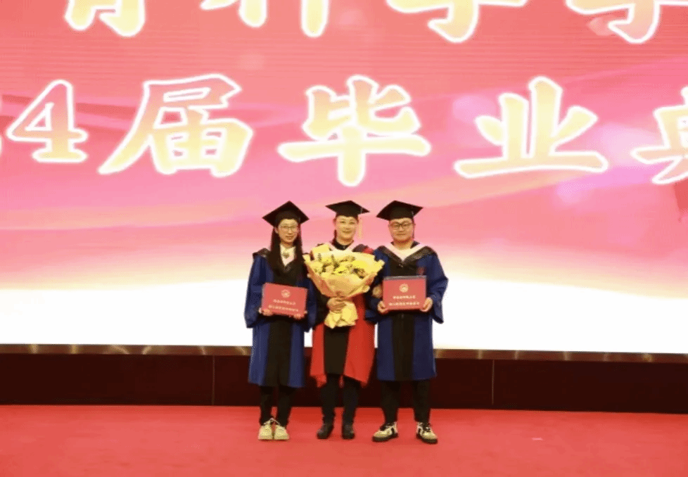 研究生导师们为研究生毕业生颁发毕业证、学位证并拨穗,祝愿他们在未来的学术道路上能够走的更远。